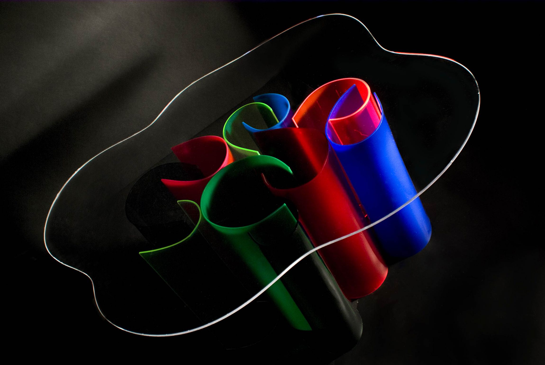 An award-winning table with contrasts of curves and colours, transparency and opaqueness. With all the differences in the real world giving it shape and illuminating its space, it dispels monotony.